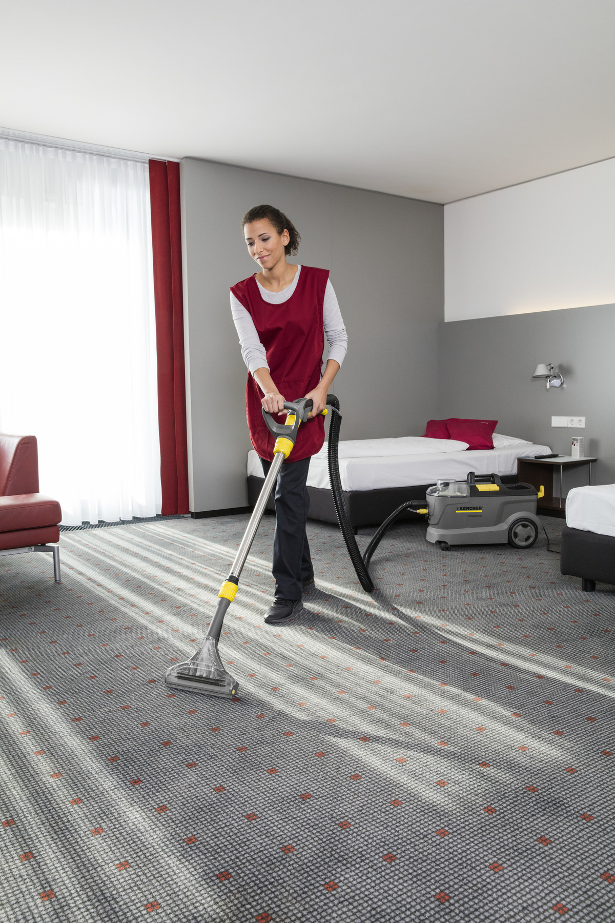 Karcher Puzzi 10/1 jest to w pełni profesjonalne urządzenie spryskująco-odsysające przeznaczone do czyszczenia: